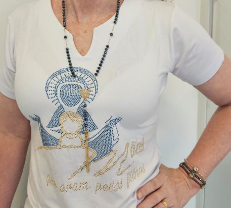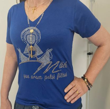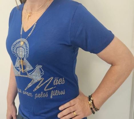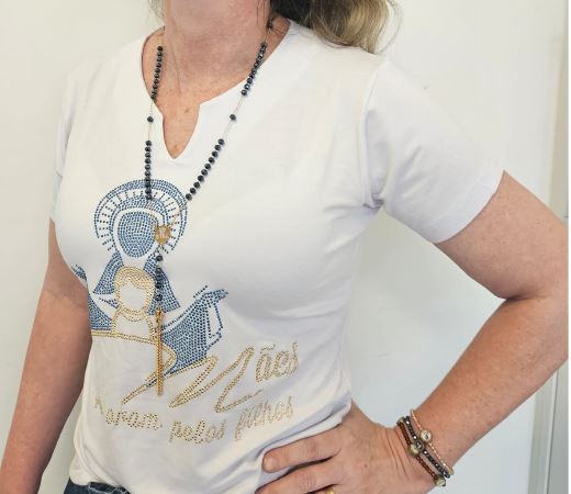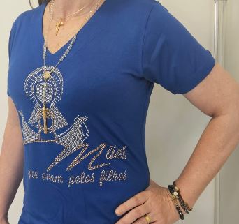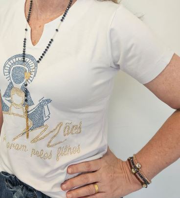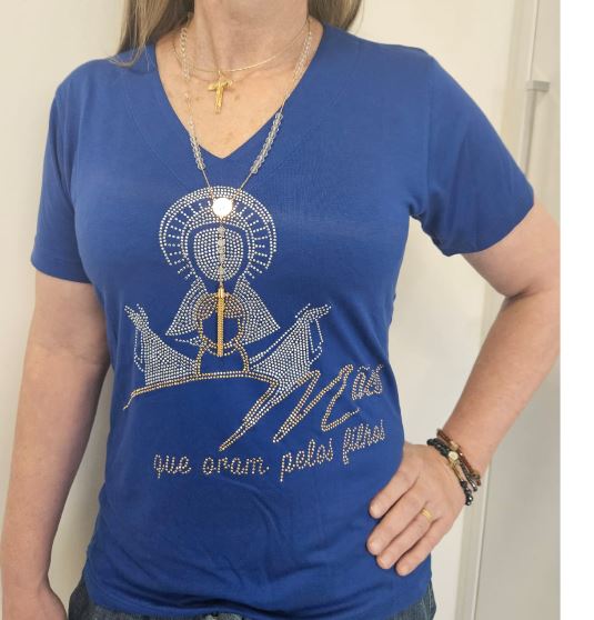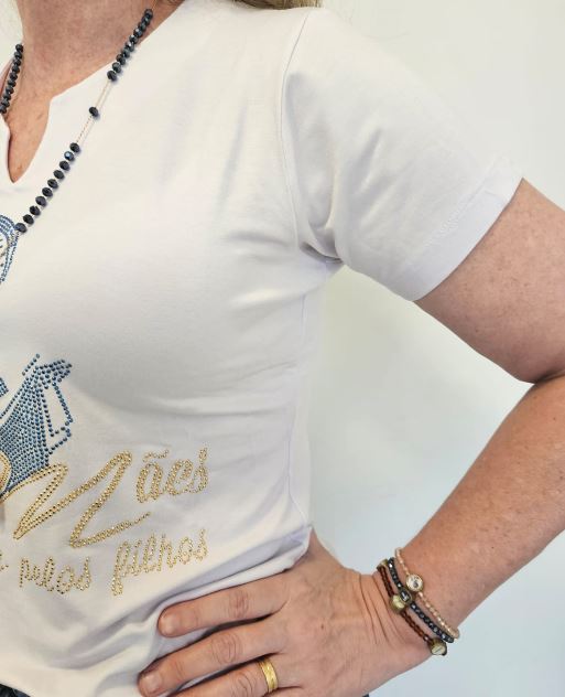 CAMISA MANGA CURTA COM BRILHO DECOTE “V”